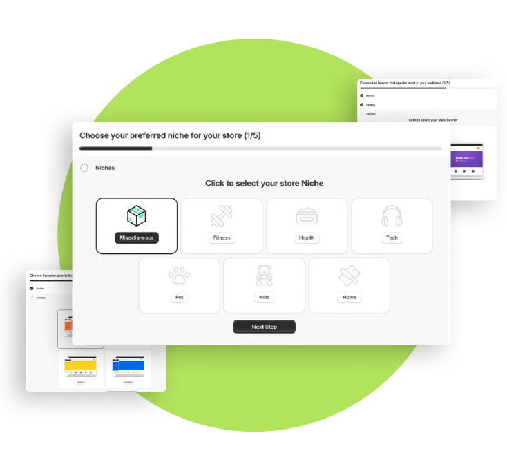 Nossa IA configura instantaneamente uma loja Shopify atraente, recheada de produtos testados no mercado.